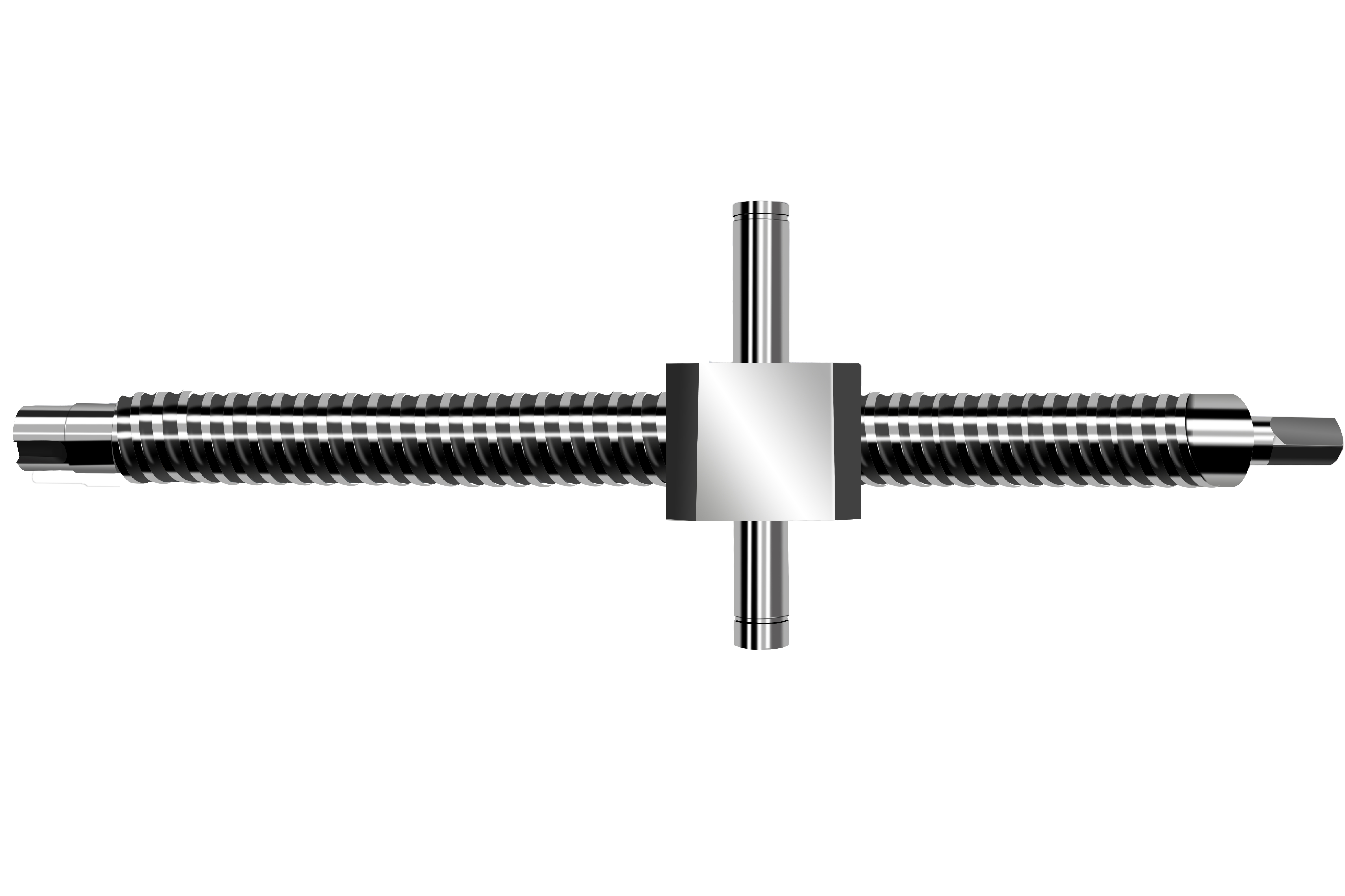 本實用新型屬于絲杠傳動技術領域,具體涉及一種雙向定長限位滾珠絲杠副,包括絲杠,絲杠上設有兩相互對稱的螺旋槽,兩螺旋槽的兩端均固定有徑向貫穿絲杠的限位釘,兩螺旋槽的中部均設有螺母,螺母的內側均布有多個圓環(huán)直槽,螺母與螺旋槽之間設有滾珠保持架,滾珠保持架的兩端均設有與限位釘相匹配的卡槽,滾珠保持架上滾動連接有若干與螺旋槽和圓環(huán)直槽相對應的滾珠。本實用新型所述的雙向定長限位滾珠絲杠副,結構簡單、維護方便,當?shù)竭_行程時可進行空轉,安全性較高。